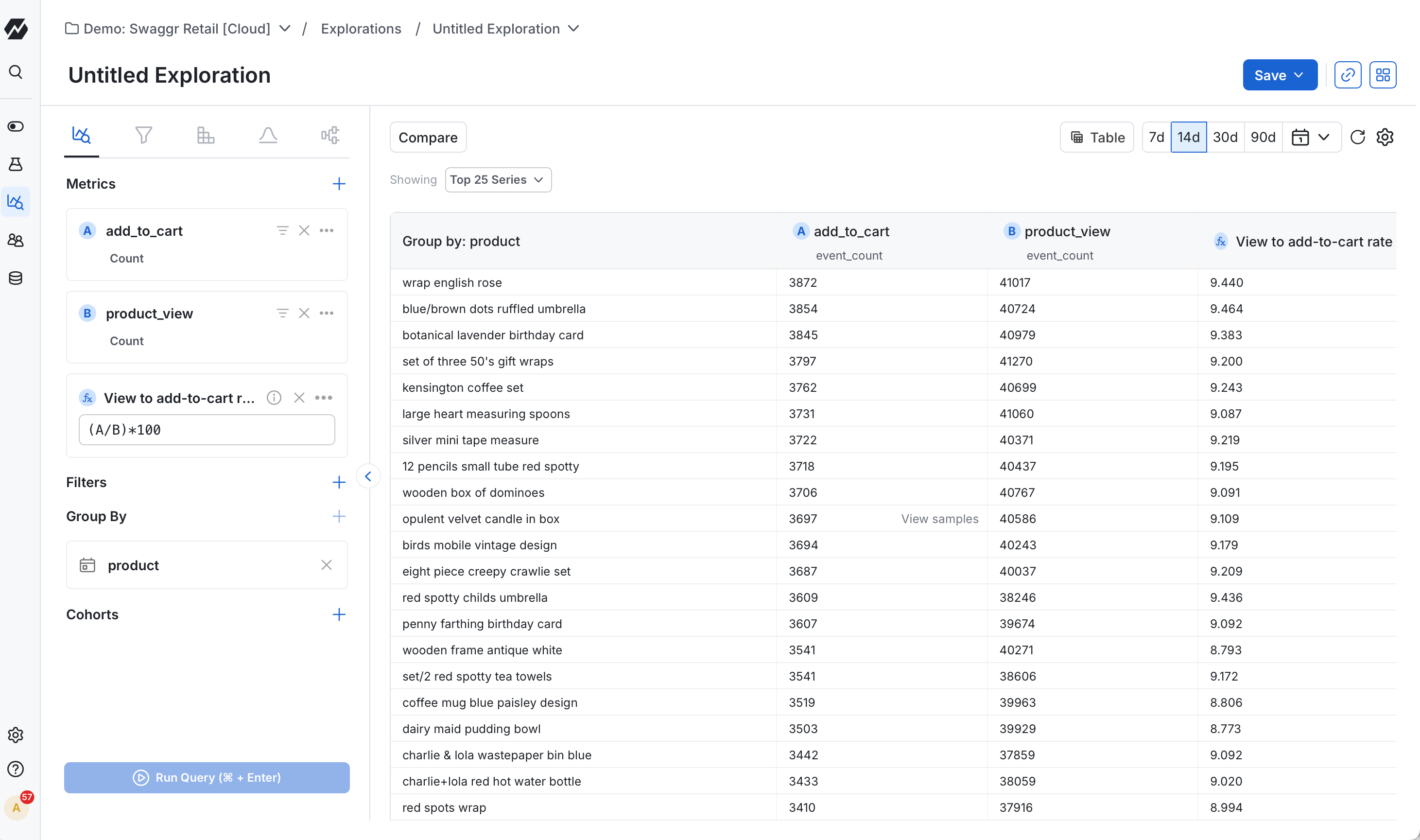 With Multi-Dimensional Group By, you can break down results by combinations like country × device × plan all in one view.